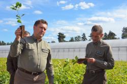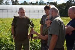 7 września 2022 r. na terenie Nadleśnictwa Dobrzejewice odbyło się szkolenie dla szkółkarzy z Regionalnej Dyrekcji Lasów Państwowych w Poznaniu. Leśna brać odwiedziła podtoruńskie nadleśnictwa w celu wymiany praktycznych rozwiązań i doświadczeń. Nic więc dziwnego, że punktem obowiązkowym takiego szkolenia była szkółka kontenerowa w Nadleśnictwie Dobrzejewice. Gościliśmy kolegów po fachu w Gospodarstwo Szkółkarskie Bielawy, gdyż to najnowocześniejsza „fabryka drzew”, która zasila materiałem sadzeniowym nie tylko nadleśnictwa z terenu Regionalnej Dyrekcji Lasów Państwowych w Toruniu. Jest to „porsche” wśród leśnych szkółek i odpowiedź na potrzebę sadzenia dużej ilości drzew na terenach poklęskowych. 16 mln sadzonek z Dobrzejewic rośnie już na klęsce z 2017 roku. Mamy możliwość wyhodowania nawet 8 mln sztuk sosny w ciągu… pół roku (!). Nasz materiał sadzeniowy gwarantuje niespotykaną udatność (przeżywalność posadzonych drzewek) i szybki wzrost. Na terenach poklęskowych jest to niezwykle ważne, by jak najszybciej „przykryć teren” drzewami (by nie doszło do erozji gleby i jej zachwaszczenia). Goście poznali szkółkarskie tajniki hodowli sadzonek kontenerowych, a my pokazaliśmy uprawy i młodniki – czyli młode lasy posadzone w naszym Nadleśnictwie tą super sadzonką .
